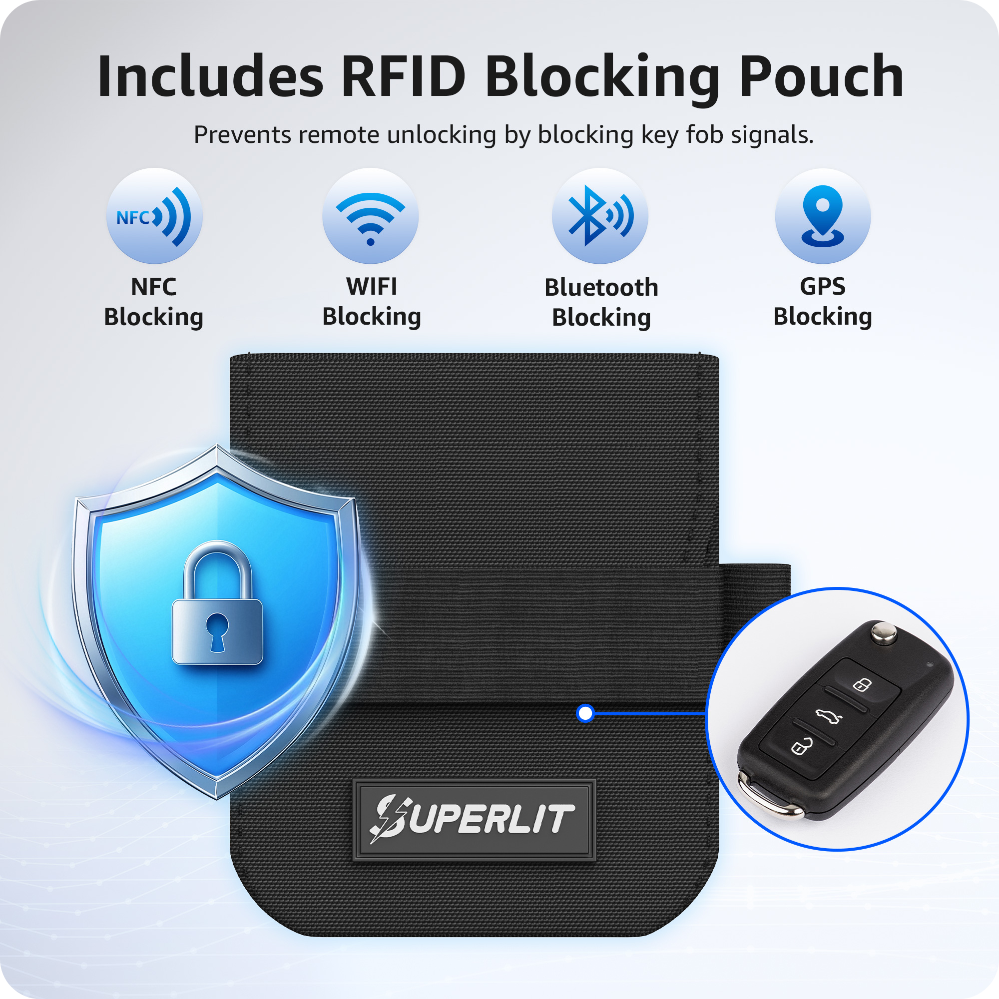 Comes with a built-in RFID blocking pouch to prevent key fob signal theft, ensuring your keyless entry vehicle stays safe from hackers and thieves, perfect for car owners who value advanced anti-theft security