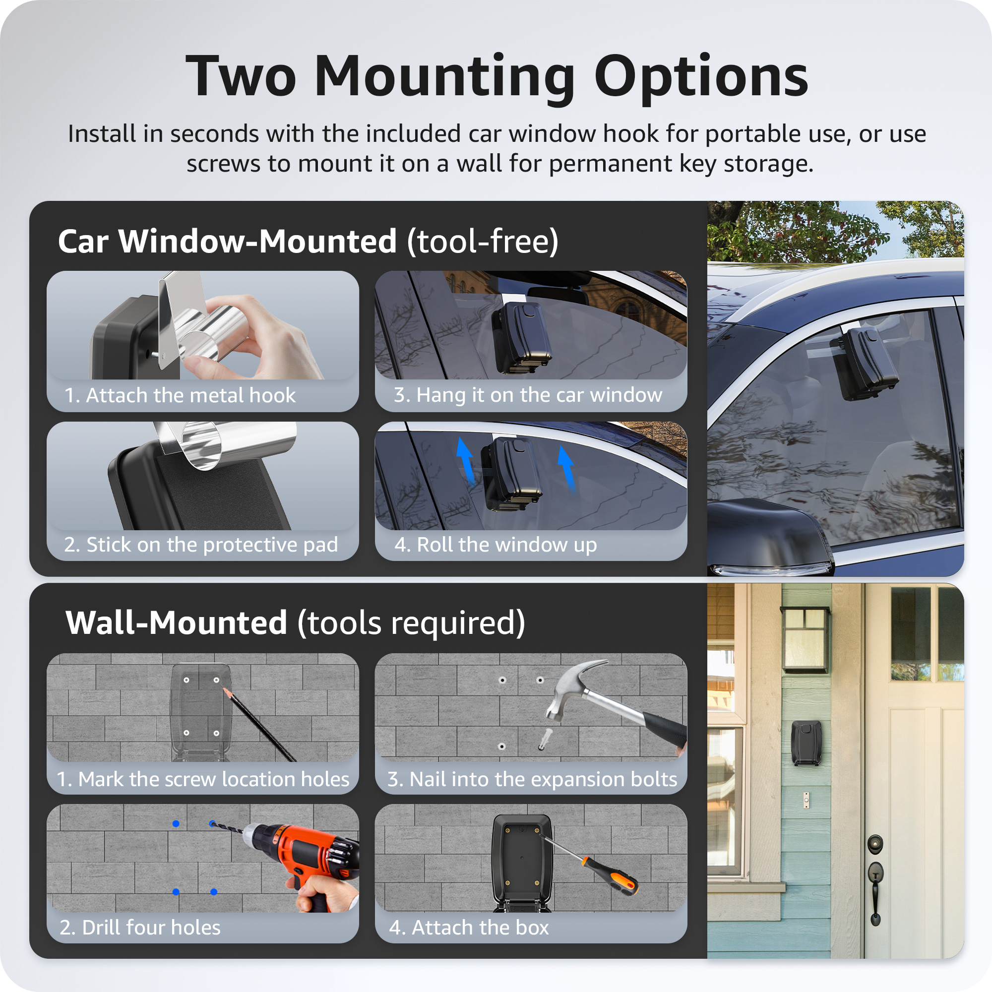 Designed for portability, this lock box can be mounted on walls, vehicles, or other secure locations, offering versatile key storage solutions for car owners, homeowners, delivery drivers, and renters.